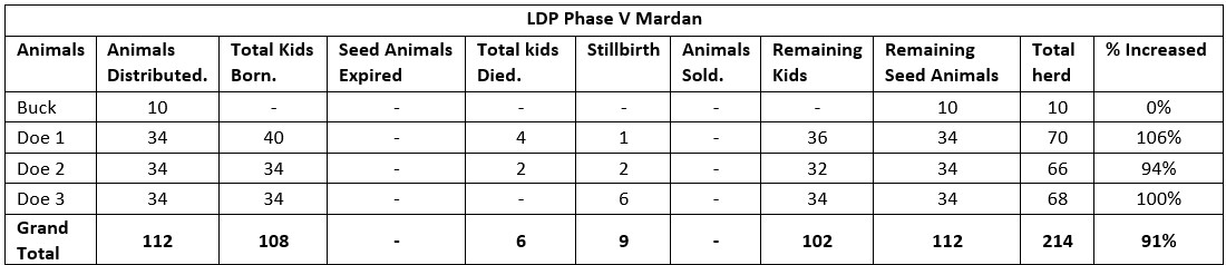 From 15th to 18th August 2025, veterinary field visits were conducted in collaboration with the field team in Mardan to assess the health of goats and kids provided to beneficiaries under Livestock Development Project Phase V and VI. The purpose of the visits was to physically inspect the livestock, evaluate their overall condition, and provide technical guidance to beneficiaries, especially in preparation for seasonal changes.
