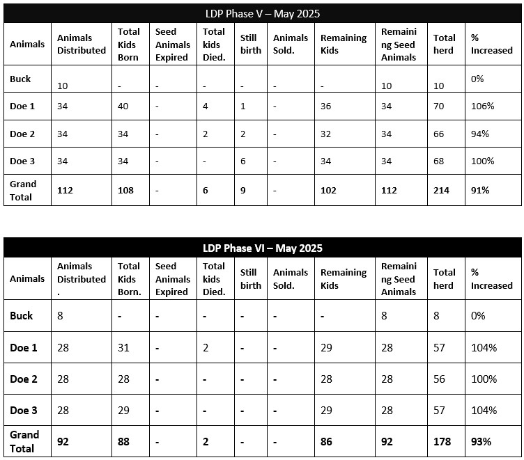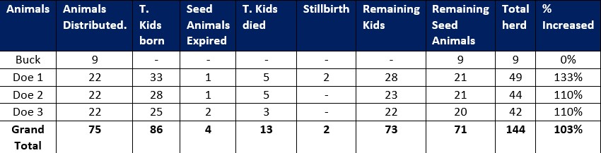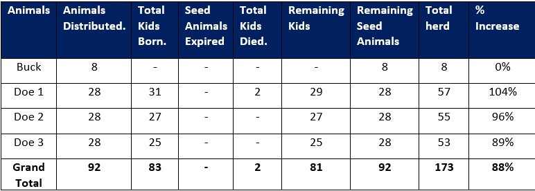 Over the course of the visits, more than 150 goats and kids were physically examined across multiple project villages. The majority of animals were found to be in good health, active, and showing no signs of illness. It was also observed that the conceiving season had begun, and most goats are expected to be pregnant by the following month. Beneficiaries were advised to take extra precautions during the rainy season, as wet conditions could increase the risk of fever and other health complications in goats. Emphasis was placed on preventive care, including proper sheltering, cleanliness, and regular observation.