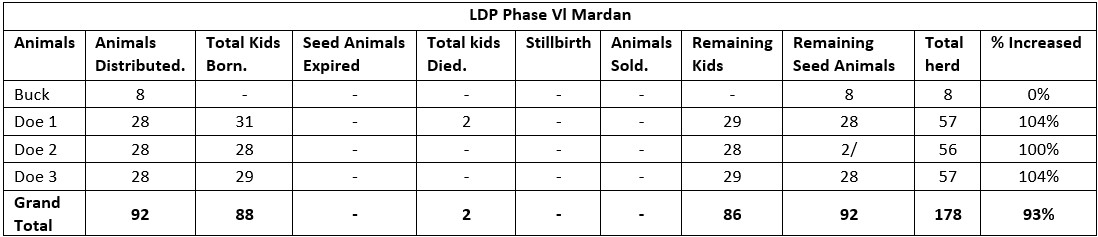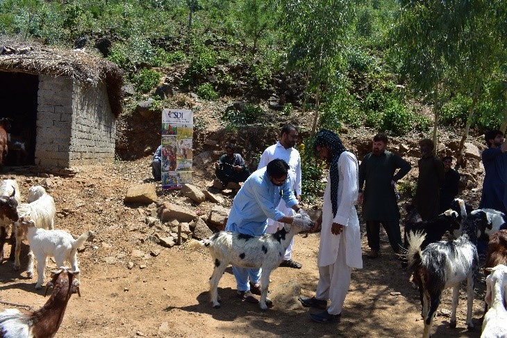From 15th to 18th August 2025, veterinary field visits were conducted in collaboration with the field team in Mardan to assess the health of goats and kids provided to beneficiaries under Livestock Development Project Phase V and VI. The purpose of the visits was to physically inspect the livestock, evaluate their overall condition, and provide technical guidance to beneficiaries, especially in preparation for seasonal changes.